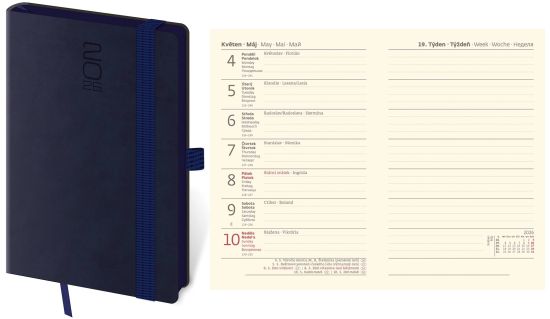 Diář Memory, týdenní, kapesní s gumičkou, tmavý modrý 2026