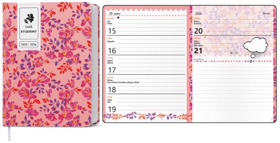 Diář Student V8, týdenní, kapesní, lamino, Růžový 2025/26