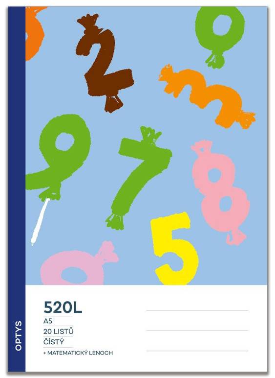 Sešit A5 čistý 520L Optys, integrovaný mat. lenoch, 20 listů
