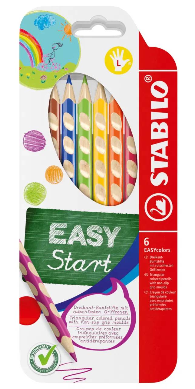 Trojhranné pastelky Stabilo Easy colors pro leváky, 6 ks