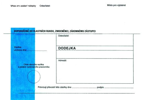 Dodejka B6 125x176 samopropisovací, modrý pruh, 1.000 ks